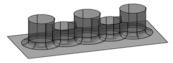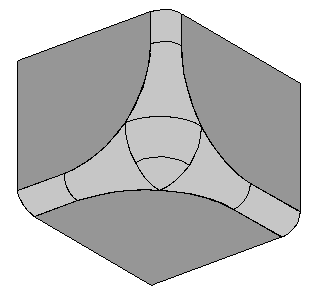 Sie können Verrundungsflächen wie nachfolgend beschrieben zwischen Sätzen von Flächen erstellen: