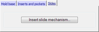 Schiebermechanismus einfügen – Klicken Sie auf diese Option, um den Schieber-Assistenten zu starten. Weitere Informationen finden Sie unter Erstellen der Schieberbaugruppe mithilfe des Schieber-Assistenten.