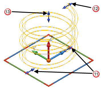 Jede Regelfläche verfügt über Bearbeitungsgriffe, die den Bearbeitungsgriffen einer Arbeitsebene ähneln (siehe unten stehendes Beispiel). Weitere grafische Ziehgriffe, die angezeigt werden, sind für jede Regelfläche spezifisch.