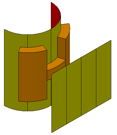 Die extrudierte H-Oberfläche wird mithilfe der Differenz zwischen der flachen Referenzfläche und der zylindrischen Steuerfläche gemorpht. Zu jedem Punkt auf der Referenzfläche gibt es einen entsprechenden Punkt mit denselben parametrischen 2D-Koordinaten auf der Steuerfläche. Dies wird verwendet, um die Umformung des H zu definieren.