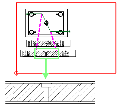 Der Stufenschnitt wird zur Erstellung eines Schnitts projiziert, der dieselbe Größe wie die ursprüngliche Ansicht hat. Diese Projektion kann nicht für präzise Messungen verwendet werden.
