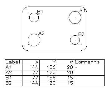 Eine Bauteilliste kann eine Tabelle sein, die die Koordinaten bestimmter Objekte in einem Modell enthält: