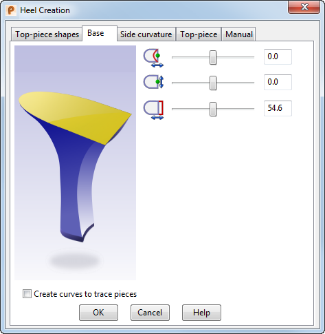 Kurven erstellen, denen Lederstücke folgen - Wählen Sie diese Option aus, um Kurven entlang der Absatzkanten zu erstellen. Verwenden Sie diese Kurven, um Teile auf dem Absatz zu erstellen, wie etwa eine Absatzabdeckung oder einen Louis-Absatzeffekt an der Vorderseite des Absatzes.