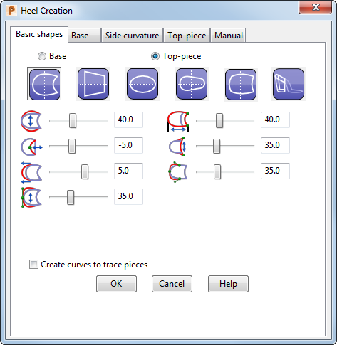 - Festlegen der Absatzgrundform mithilfe vordefinierter Profile für die Basis und das oberste Lederstück.