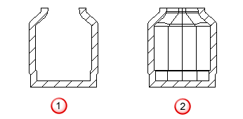 Die Kanten der Stücke entlang des Schnitts dienen zum Definieren von Schnittansichten.