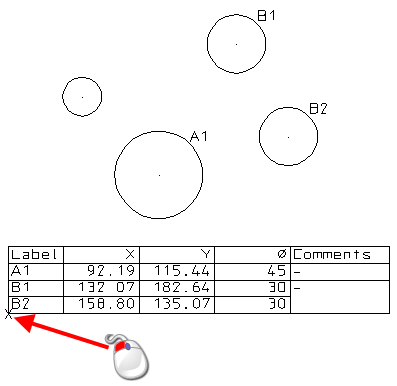 - Klicken Sie im Grafikfenster auf eine Position auf der Zeichnung, wenn Sie eine Bauteilliste auf dem Bildschirm erstellen möchten: