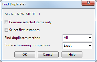 - Nur ausgewählte Elemente untersuchen - Wählen Sie diese Option aus, um Duplikate nur in den Objekten anzuzeigen, die gegenwärtig ausgewählt sind. Ansonsten wird das gesamte Modell überprüft.