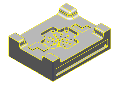 Im folgenden Beispiel wird gezeigt, wie Sie Merkmale in einem Volumenmodell mit festgelegten Bemaßungen auswählen können: