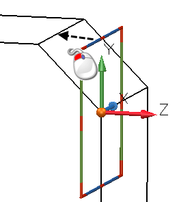 Die Arbeitsebene wird so um ihre X-Achse gedreht, dass die Y-Achse auf der geneigten Fläche liegt.