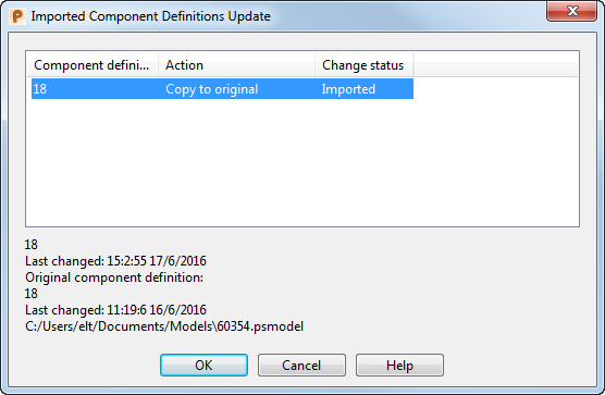 - Vom Original kopieren – Die importierte Komponentendefinition wird durch die ursprüngliche Definition ersetzt.