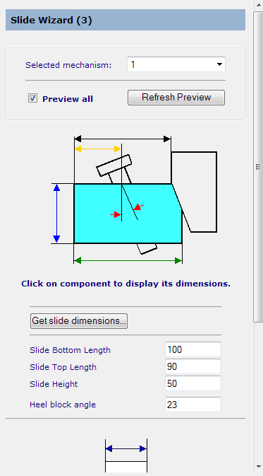 3. Klicken Sie auf OK, um das Dialogfeld Komponenten-Assistent zu schließen und die Abmessungen zur Seite Schieber-Assistent zu übertragen.