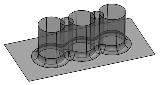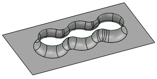 Die zwischen der Fläche und der Drahtmodellkurve erstellte Verrundung wird im Folgenden gezeigt: