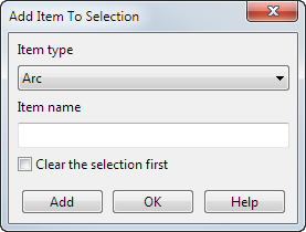 Verwenden Sie die Start-Registerkarte > Auswahl-Gruppe > Option Mit Namen, um das Dialogfeld Element der Auswahl anfügen zu öffnen. Mithilfe des Dialogfelds können Objekte nach ihren Namen ausgewählt werden.