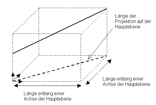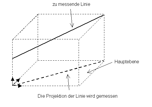 Eine Linie wird mithilfe einer Projektion auf der Hauptebene gemessen, siehe Bild unten.