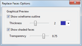 Mit den Optionen in diesem Dialogfeld können Sie das Erscheinungsbild der grafischen Vorschau anpassen, die angezeigt wird, bevor Sie auf Ausführen im Dialogfeld Flächen ersetzen klicken.