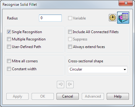 Tipp: Wenn Sie mehrere Verrundungen identifizieren oder Veränderungen an bestehenden vornehmen möchten, ohne dass die Geometrien gleichzeitig geändert werden, klicken Sie auf