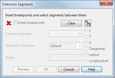 Verwenden Sie dieses Formular, um die zusammengesetzte Kurve in kleinere Segmente aufzuteilen. Verwenden Sie diese, um die Richtung der Lateralen in der Flächenverlängerung festzulegen.