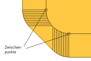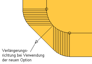 Im unten stehenden Schaubild können Sie ein Segment einer Verlängerungsfläche an einer abgerundeten Ecke sehen: