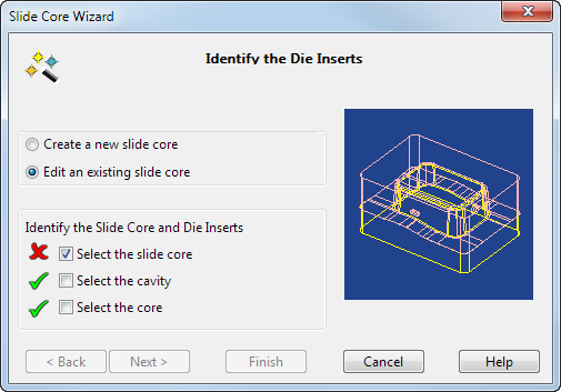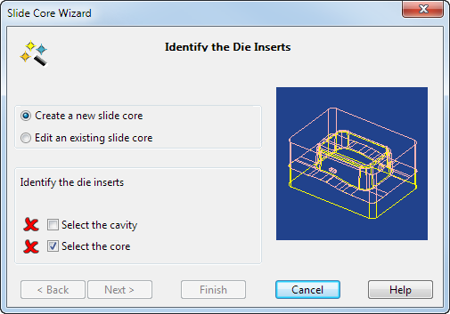 Dieses Dialogfeld wird angezeigt, wenn Sie Schieberkern auf der Seite Auswerferseitentyp auswählen wählen