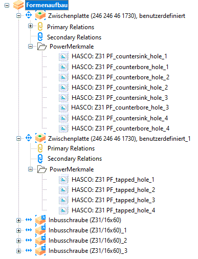 PowerMerkmale werden automatisch erstellt, und das Modell und der Baugruppenbaum werden aktualisiert: