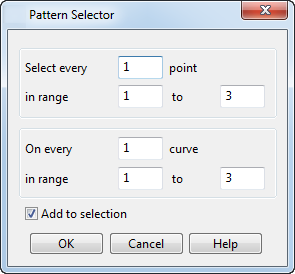 - Auf jeder M-Kurve – Wählt Punkte von jeder m-ten Kurve ab der ersten Kurve im Bereich aus, wobei m der Zahl entspricht, die Sie eingegeben haben. Wenn Sie 3 eingeben, werden Punkte auf der ersten Kurve des Bereichs ausgewählt, gefolgt von jeder weiteren 3. Kurve.