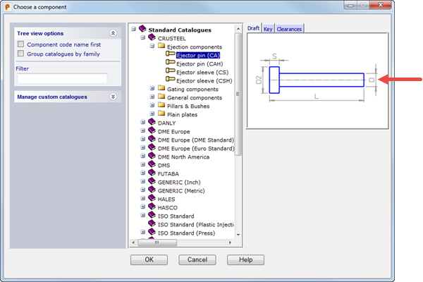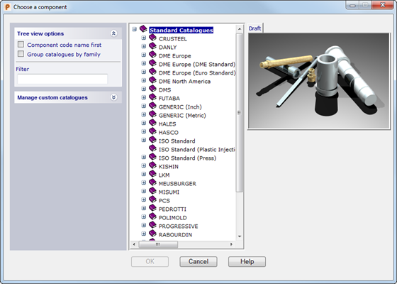 – Wählen Sie einen Katalog aus, um die Komponentenliste anzuzeigen. Wählen Sie die Komponente aus, die Sie erstellen möchten. Das Bild der Komponente wird in dem Dialogfeld angezeigt:
