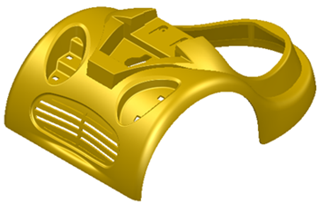 Beim Importieren eines Modells (z. B. über IGES), aus dem ein Formwerkzeug erstellt wird, ist es wichtig, die Flächen aufzuteilen, und zwar in Flächen, die die Außenseite der Komponente (die Gesenkseite der Form) bilden, sowie in jene, die die Innenseite der Komponente (die Kernseite der Form) bilden. Einige Modelle (besonders IGES) können Tausende Flächen enthalten, einige davon werden nahe beieinander liegen, aber jede definiert einen anderen Teil der Form. Die Trennung von Hand wäre eine sehr schwierige Aufgabe. Die genannte Option berechnet die Trennung jedoch schnell und bequem.