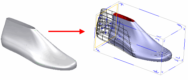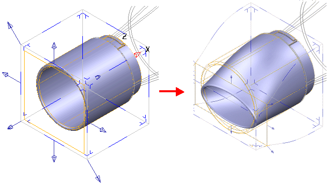 Das folgende Beispiel zeigt den Formenwechsel, der erreicht werden kann, indem die Ziehgriffe zum Bearbeiten des Modells eingesetzt werden.