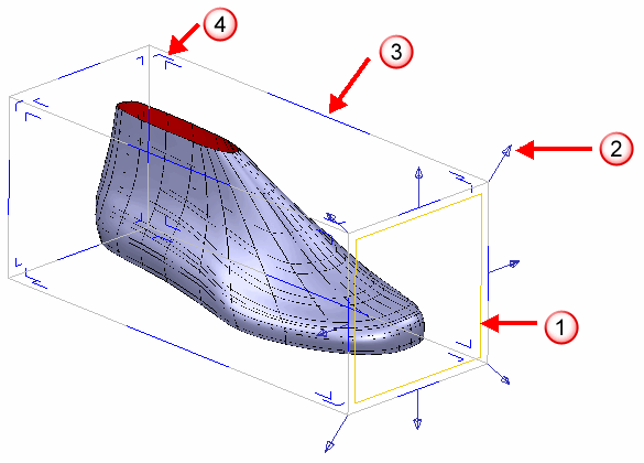 Verwenden Sie die Flexibler Rahmen-Registerkarte des Morphen-Dialogs, um die Flächen des Volumenmodells auszuwählen, die Sie verformen möchten, und den Morph festzulegen.