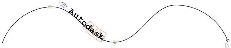 Wenn Text erstellt wird, wird der Endpunkt am Ende der Kurve erstellt. Sie können den Endpunkt entlang der Kurve zu jedem beliebigen Punkt zwischen dem Startpunkt und dem Ende der Kurve ziehen.