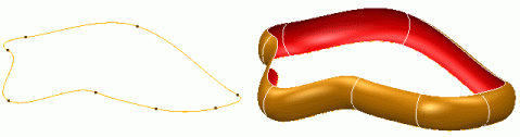 • Normale mit bester Passung –Wählen Sie diese Option aus, um eine Sicke von einer nicht-ebenen Kurve zu erstellen, die am Besten zur Normalen der Kurve passt.