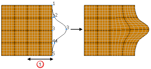 Je näher sich der Abstand zu der Grenzkurve oder -fläche befindet, umso geringer fällt die Verschiebung des Punkts aus. Abseits der ausgewählten Kurve oder Oberfläche werden die Punkte nicht verschoben. Die Kurve oder Oberfläche sollte die Referenzkurve nicht überschreiten.