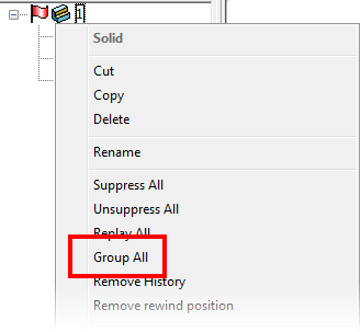 - Individuelle Elemente im Baum auswählen und die Option Alle gruppieren im Volumenmodellbaum auswählen.