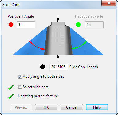 - Die Länge des Schieberkerns im Merkmal – Das andere Merkmal und der Schieberkern werden ebenfalls aktualisiert, wenn diese von Toolmaker erkannt werden.