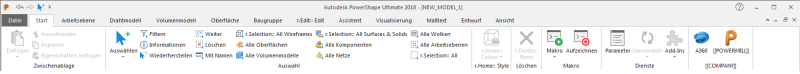 PowerShape verwendet eine benutzerdefinierbare Menüband-Benutzeroberfläche, die über Registerkarten mit zwei verschiedenen Arten von Schaltflächen und erweiterte QuickInfos verfügt.