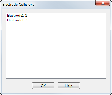 Anmerkung: Wenn keine Kollisionen festgestellt werden, werden keine Elektroden im Formular aufgelistet.