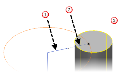 Auf dem Kreis wird der Rotationspfad um die Achse angezeigt.