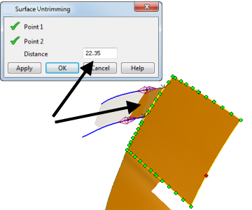 - Klicken Sie auf Fläche-Registerkarte > Fertigung-Gruppe > Werkzeuge > Enttrimmen, um das Dialogfeld Fläche enttrimmen anzuzeigen: