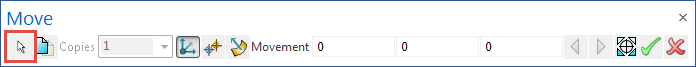 Es gibt drei Möglichkeiten zum Angeben der Richtung der Bewegung. Wählen Sie eine der folgenden Schaltflächen in der Verschieben-Symbolleiste aus, um die Bewegungsmethode anzugeben: