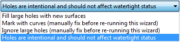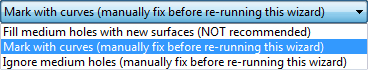 In diesem Abschnitt wird die Anzahl der großen Löcher, mittelgroßen Löcher und kleinen Lücken im Modell angegeben. Sie können entweder die vorgegebenen Vorgänge übernehmen oder eine Option aus der entsprechenden Dropdown-Liste auswählen: