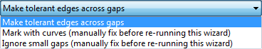 Weiter – Wenn Sie diese Option auswählen und das Volumenmodell wasserdicht ist, wird die Seite Bestehende Flächenverknüpfungen im Volumenmodell ausbessern angezeigt. In allen anderen Fällen wird eine Zusammenfassung des Volumenmodells auf der Seite Volumenstatus nachprüfen angezeigt.