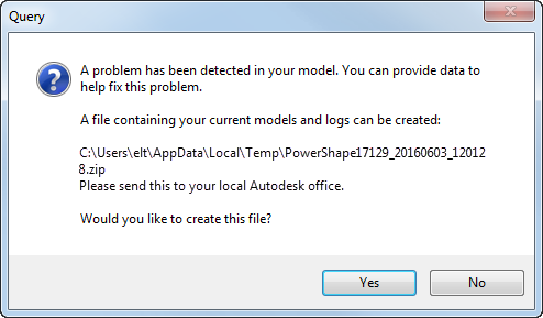 Wenn ein Datenbankfehler erkannt wird, fordert ein Dialogfeld Sie dazu auf, das Modell und die Makros abzuschicken und analysieren zu lassen.