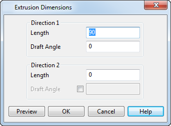 Richtung 1 - Länge - Dies ist die Länge der Extrusion. Die Länge der Extrusion kann bei null liegen, wenn der Wert von Richtung 2 Länge ein anderer als null ist.