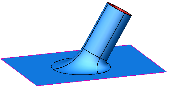 Eine Übergangsfläche bildet eine glatte Verbindung von einer Fläche zu einer Gruppe von Flächen. Sie verlässt die erste Fläche tangential und wird mit der Gruppe von Flächen verbunden, um einen glatten Übergang zwischen diesen sicherzustellen: