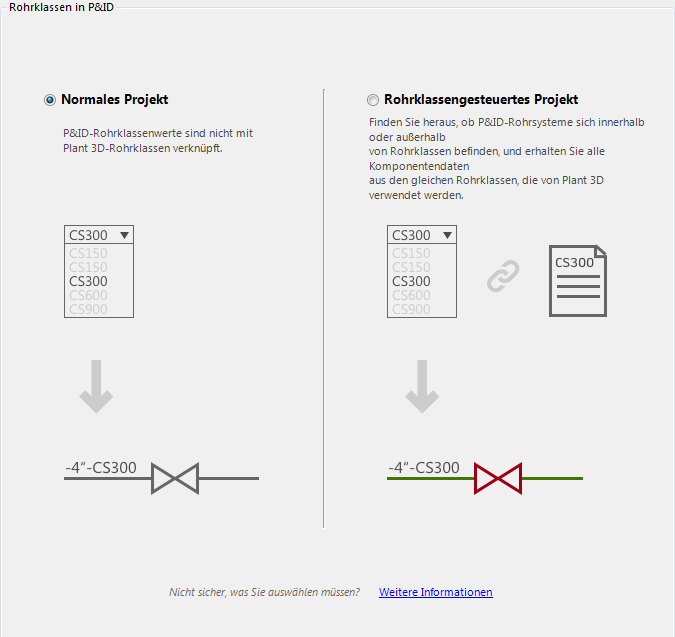 Legt das Projekt so fest, dass keine Verbindung zwischen den P&ID-Rohrklasseneigenschaften und den Plant 3D-Rohrklassen besteht.
