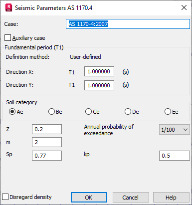 Seismic Analysis Parameters (Australian Code AS 1170-4:2007)