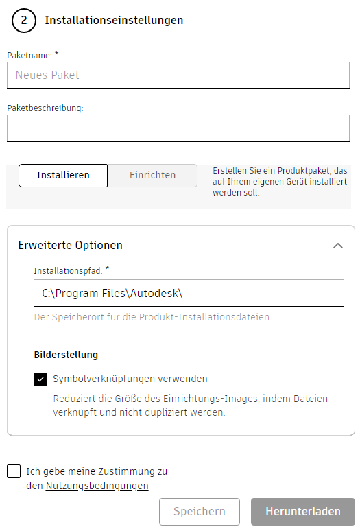 Der Vorgang entspricht dem Erstellen einer Einrichtung. Weitere Informationen zum Konfigurieren der benutzerdefinierten Installation finden Sie unter Revit-Einrichtungen.
