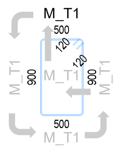 Wenn die Stabebene lotrecht zur Ansicht verläuft, was bei Plattenbewehrung in einem Bewehrungsplan der Fall wäre, werden die Biegeformauszüge so ausgerichtet, als ob die Verlegung geschnitten und der Schnitt nach oben (d. h. mit Blick von unten in der Ansicht) oder nach links (d. h. mit Blick von rechts) gedreht wurde.