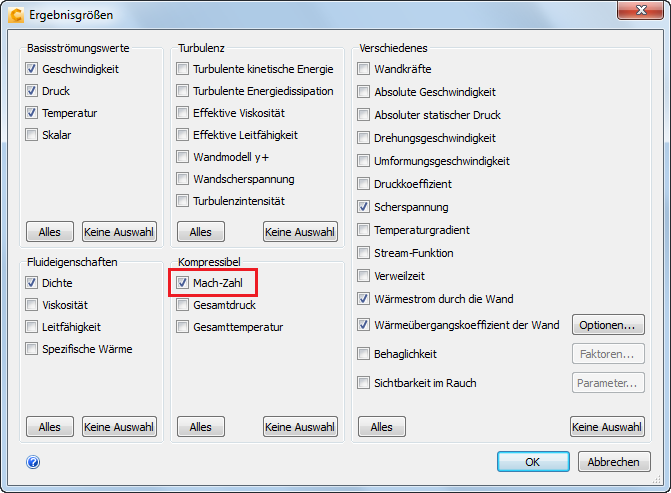 Aktivieren Sie die Ausgabe der Mach-Zahl, indem Sie Mach-Zahl auswählen. Klicken Sie auf OK.