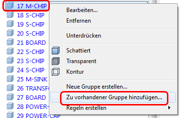 Klicken Sie mit der rechten Maustaste auf das andere M-Chip-Teil in der Liste, und wählen Sie Zu vorhandener Gruppe hinzufügen.